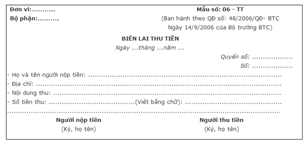 bien lai thu tien