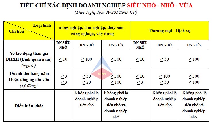 Tiêu chí xác định doanh nghiệp siêu nhỏ được tóm tắt như sau: