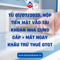 Nghị định 181/2025/NĐ-CP về việc “NỘP TIỀN MẶT VÀO TÀI KHOẢN NHÀ CUNG CẤP” không còn được xem là hình thức thanh toán không dùng tiền mặt hợp lệ, có hiệu lực từ ngày 01/07/2025 (thời điểm Nghị định được ban hành).