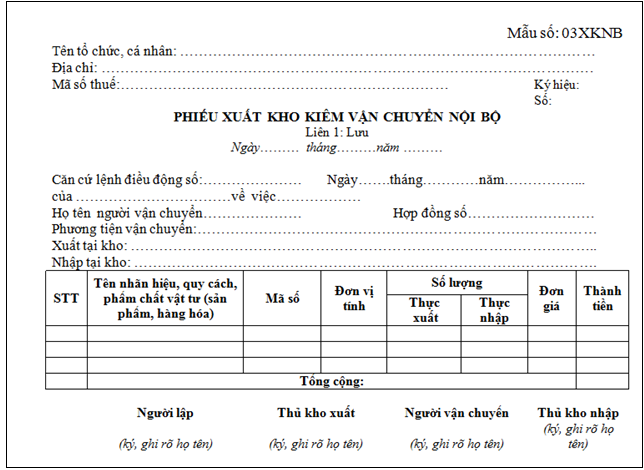 » phiếu xuất kho kiêm vận chuyển nội bộ